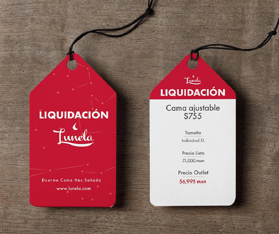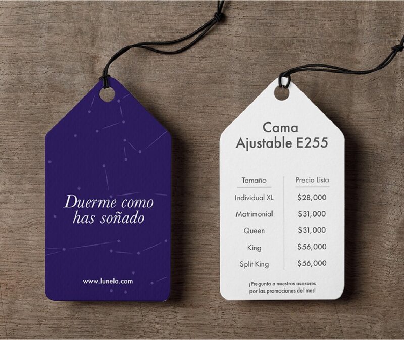Marca de colchones premium dentro de la república mexicana con presencia en Monterrey y CDMX. Diseño e impresión de tags para sus showrooms.