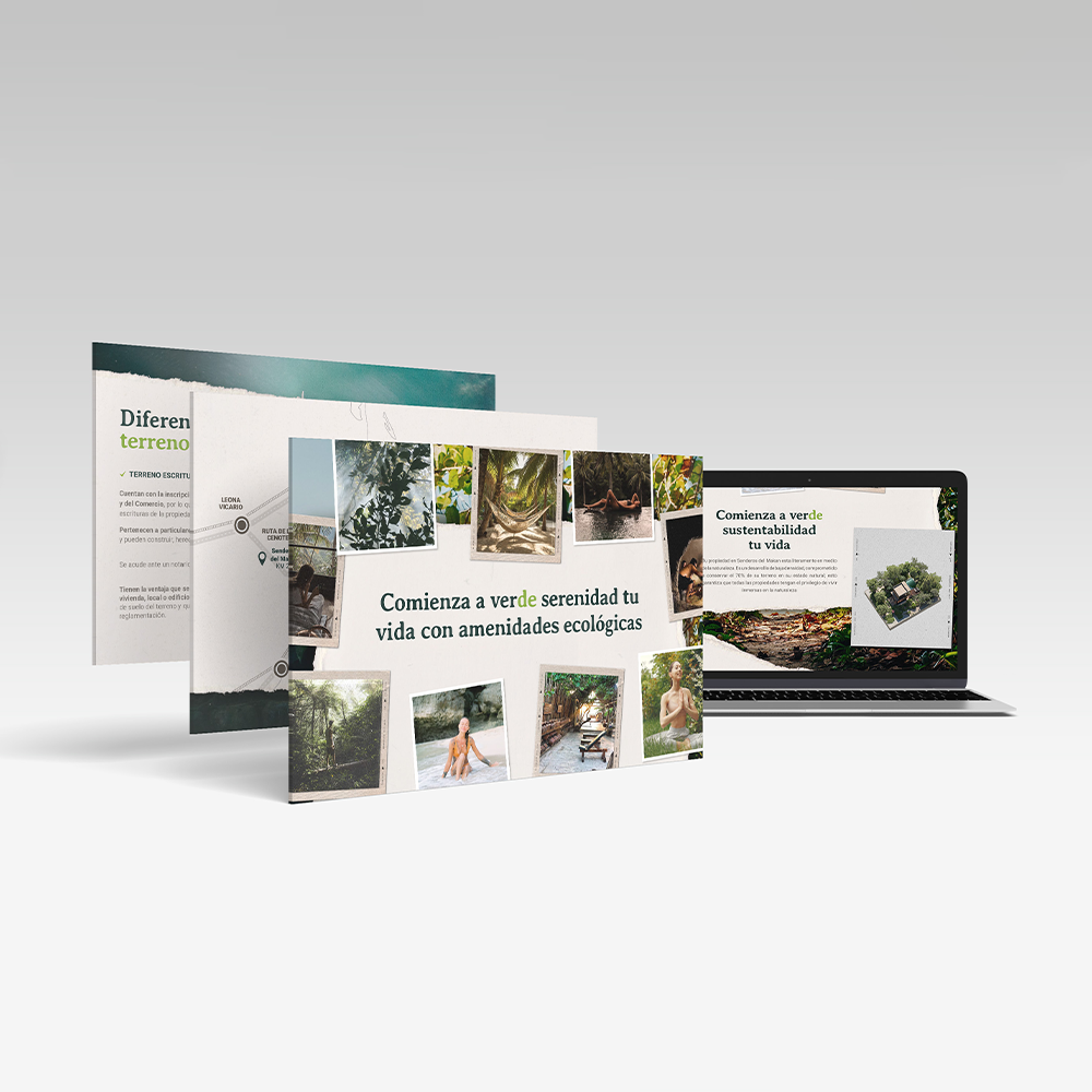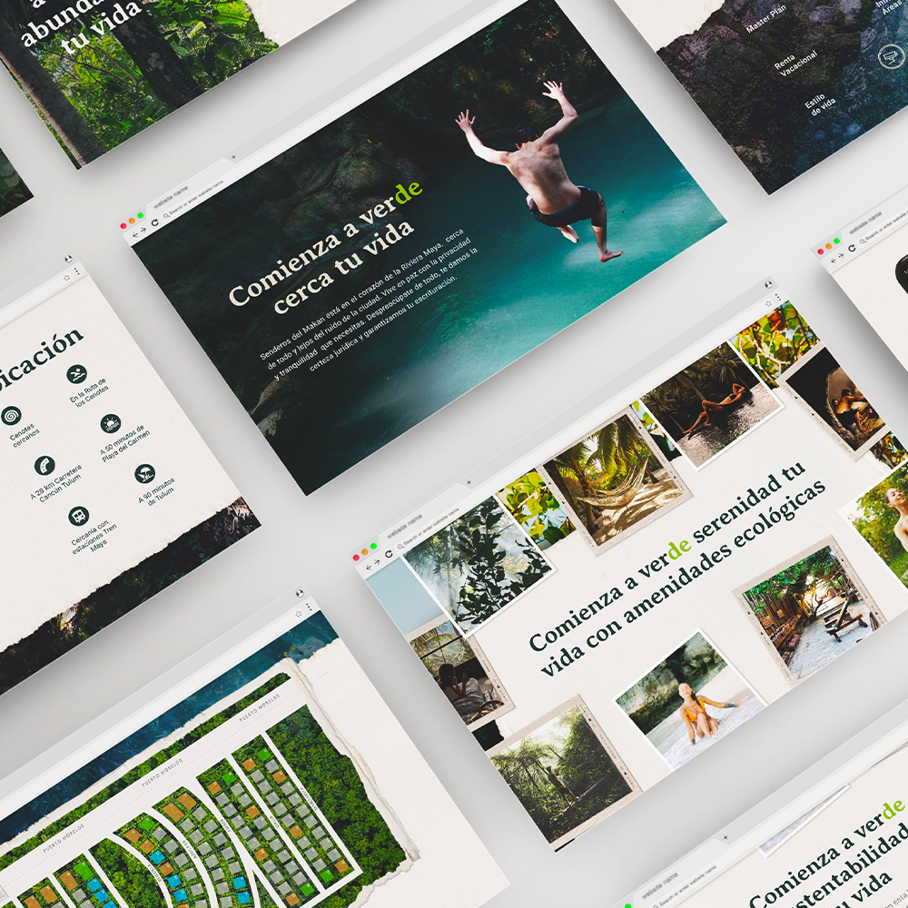 Senderos del Makan es un complejo de lotes ubicados en la península del país. Al ser una marca nueva y contar ya con varios competidores, trabajamos un brochure que fuera atractivo y a la vez pudiera ser inmersivo al concepto de la marca, para que el usuario pueda entender las ventajas del lugar.